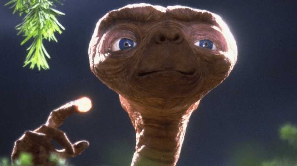 E.T. hails from a friendly alien species that comes to earth to collect botanical samples. He’s left behind by accident. He hides from people out of fear, but ultimately becomes a friend and family member to Elliot’s family.